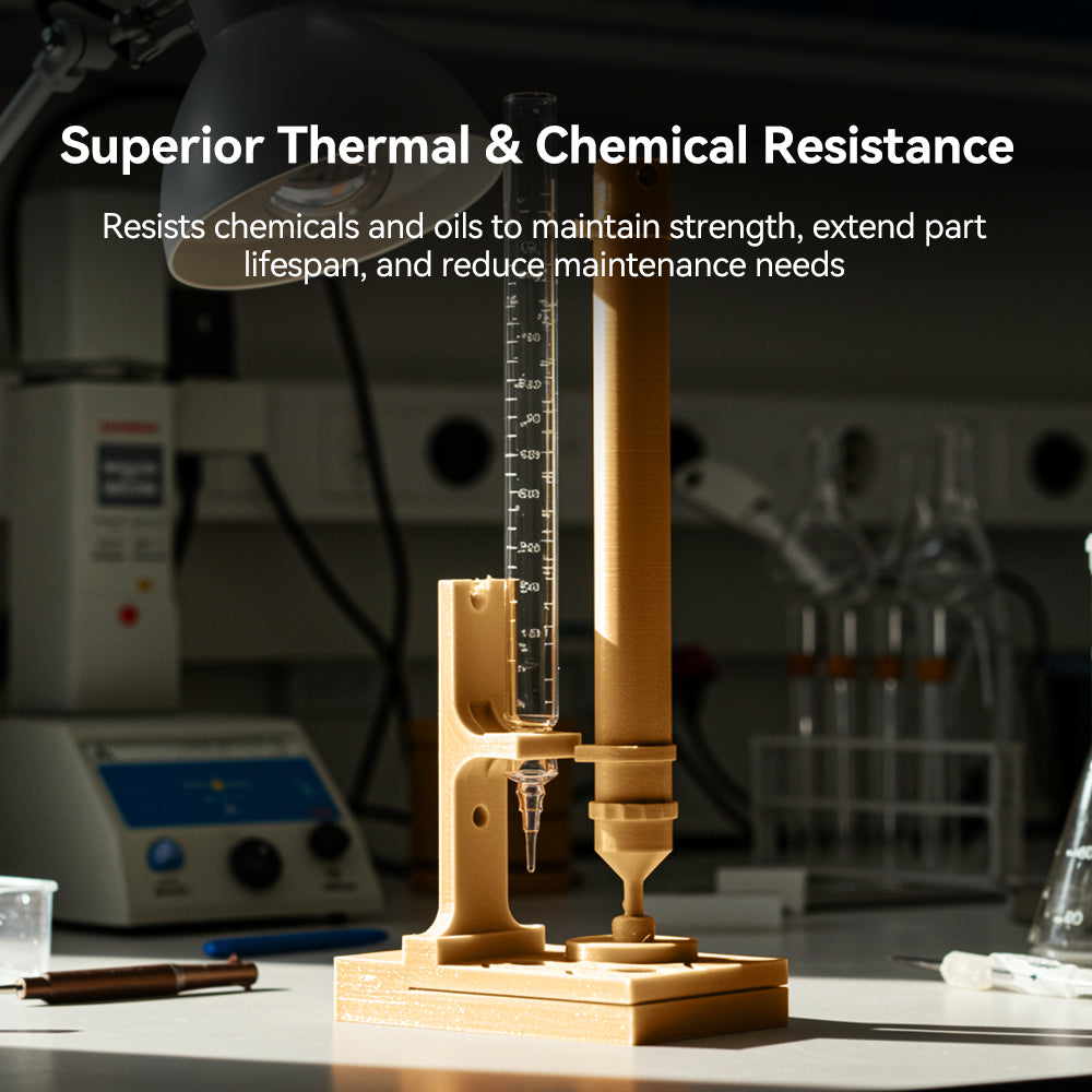 SUNLU PEEK is a premium engineering filament offering excellent heat resistance (HDT up to 147°C), high strength and toughness, superior chemical resistance, self-lubricating performance, and V0 flame retardancy. Designed for extreme industrial environments, it delivers reliable, long-term performance for high-end engineering applications.