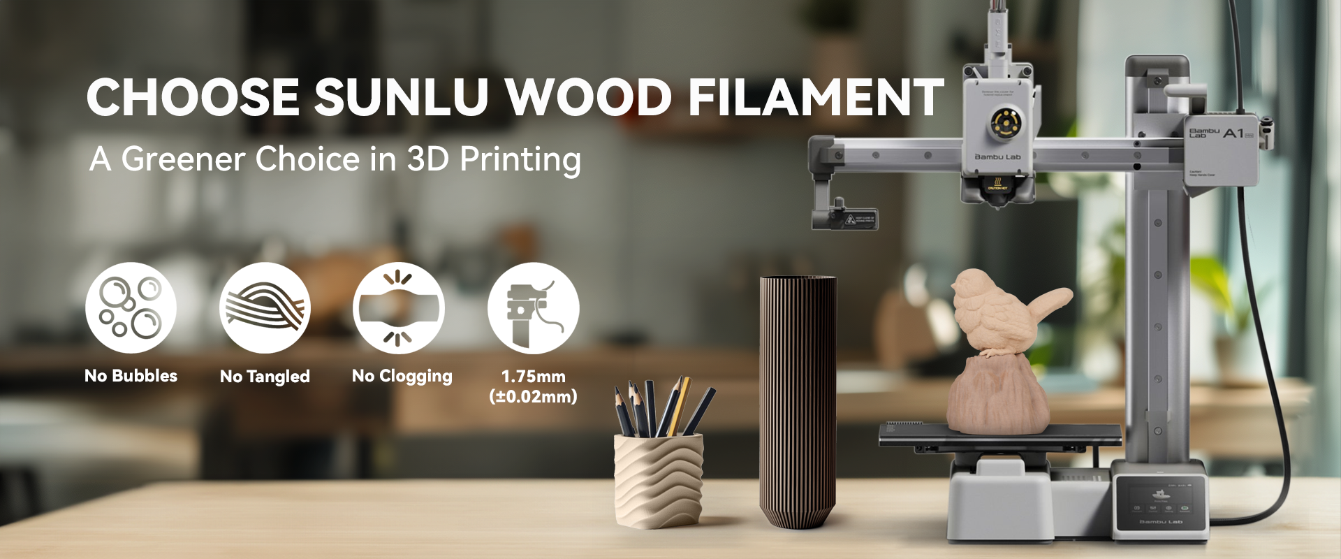 SUNLU Upgraded Wood PLA for Enhanced Texture and Speed
