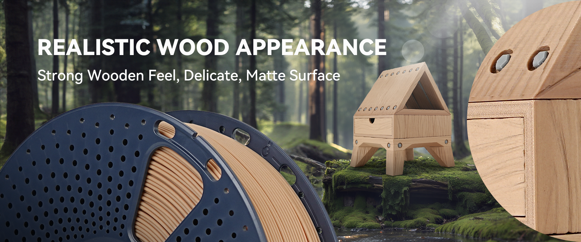 15% Real Wood Powder: Contains 15% wood powder, delivering a natural wood scent during printing and results that closely resemble real wood.