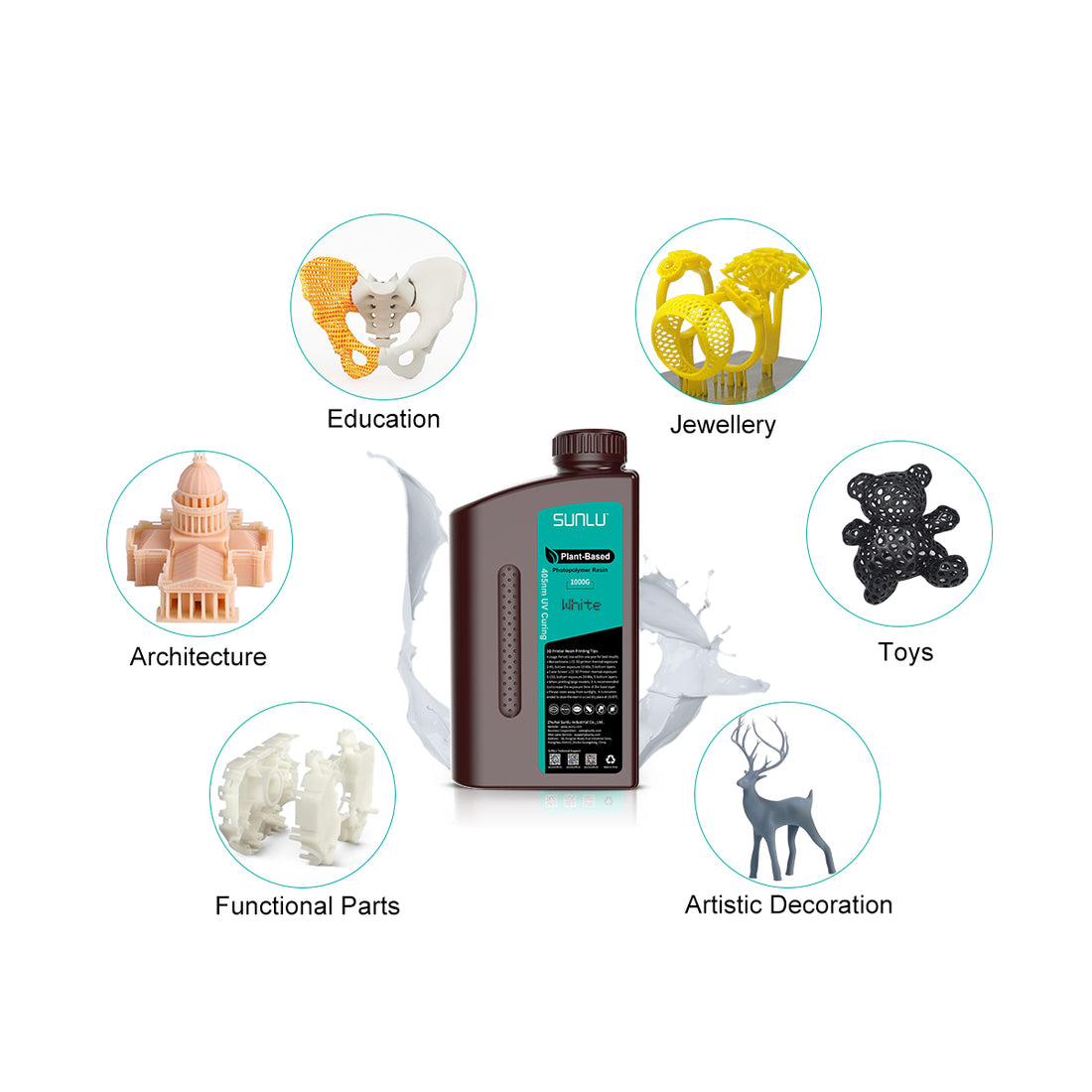SUNLU Plant-Based Resin has a wide application: Education,Jewellery,Toys,Artistic Decoration,Functional Parts,Architecture and so on.