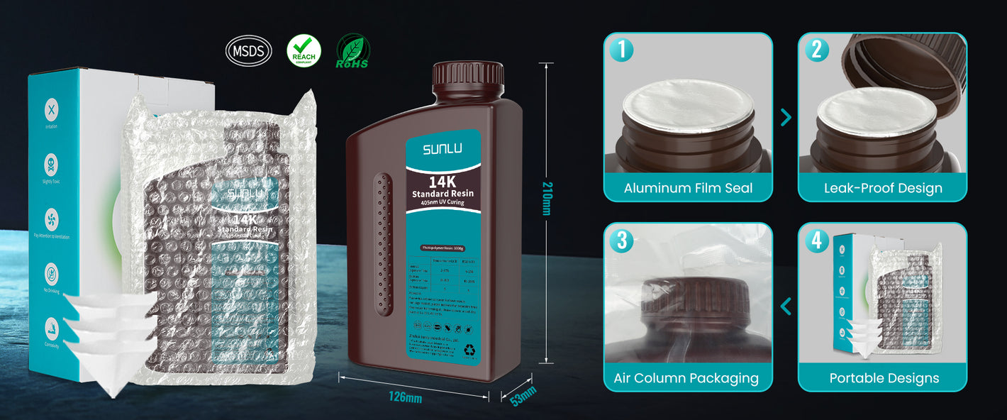 Leak-proof bottle is fully wrapped with a plastic bubble bag and reinforced package box to make sure the resin stays in place where they belong.