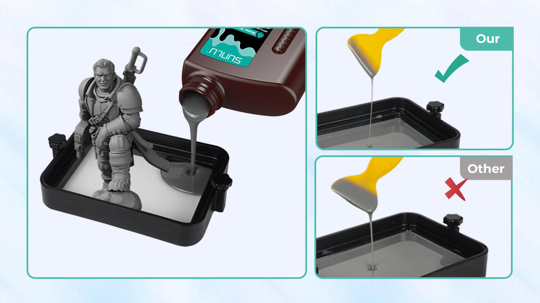 Fast Curing and Excellent FluiditySUNLU water washable resin has low viscosity and excellent fluidity.