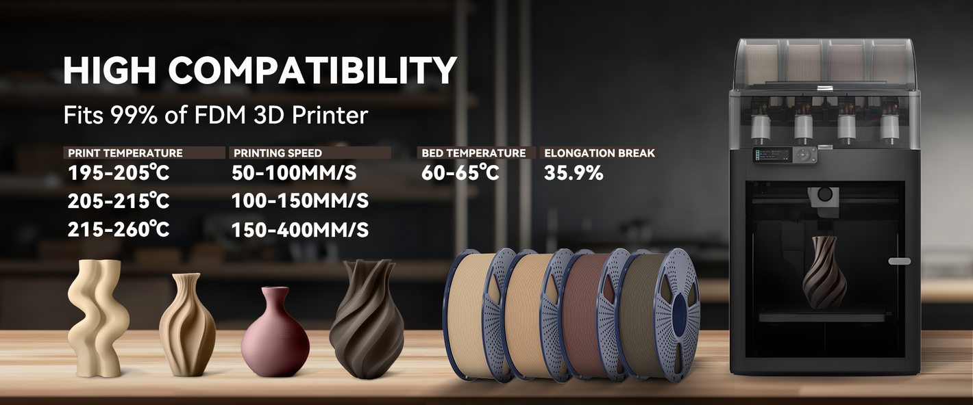 [15% Real Wood Powder] Contains 15% wood powder, delivering a natural wood scent during printing and results that closely resemble real wood.