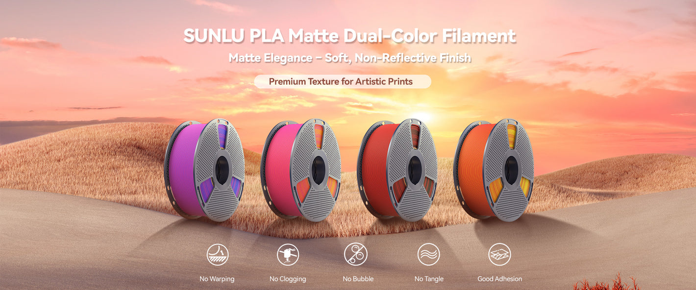 SUNLU Matte PLA Dual-Color 3D Printer Esthenic Filament 1KG, Seamless Two-Tone Shifts & Soft Matte Finish