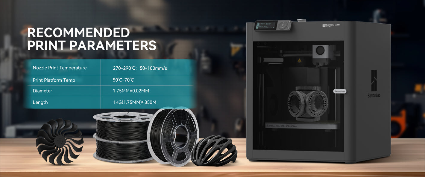 [Perfect for Industrial Engineering] Engineered for strength and durability, SUNLU PA6-CF filament is suitable for industrial uses that require high torsional, tensile, and impact resistance. Ideal applications include gears, screws, helmets, fan blades, toy car chassis, skateboard parts, and bicycle frames.