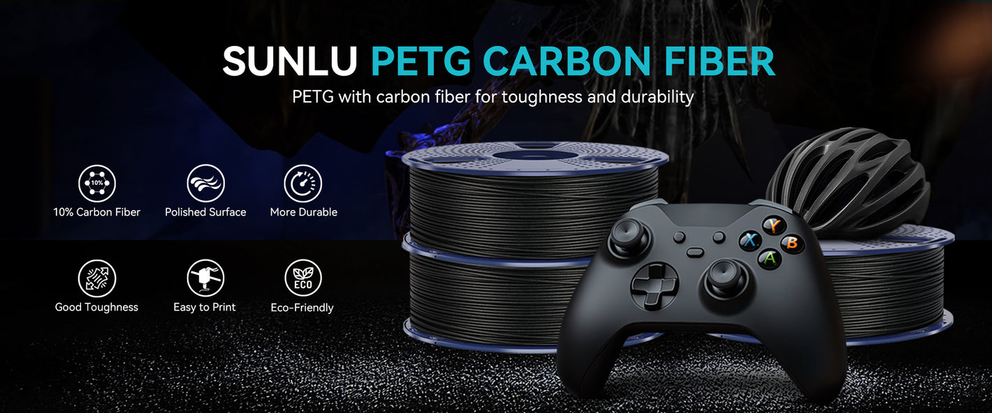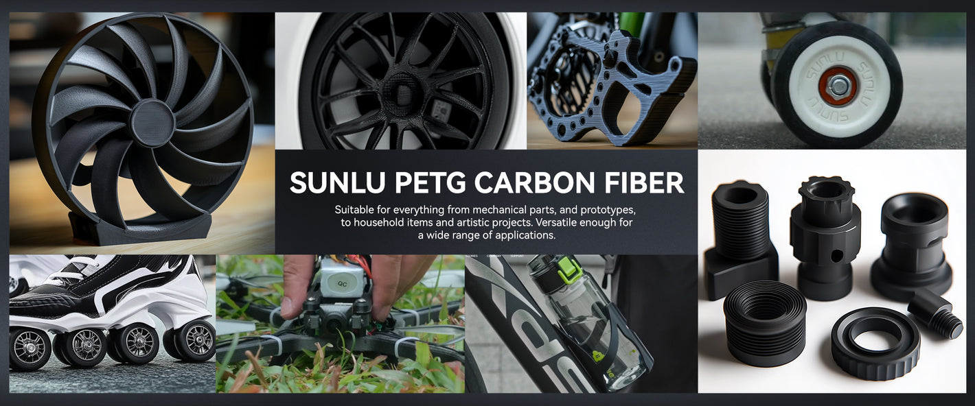[10% Carbon Fiber Reinforced] SUNLU PETG-CF filament is infused with 10% carbon fiber, providing exceptional strength and stiffness. Ideal for industrial applications such as drone frames, tools, automotive components, and structural parts.