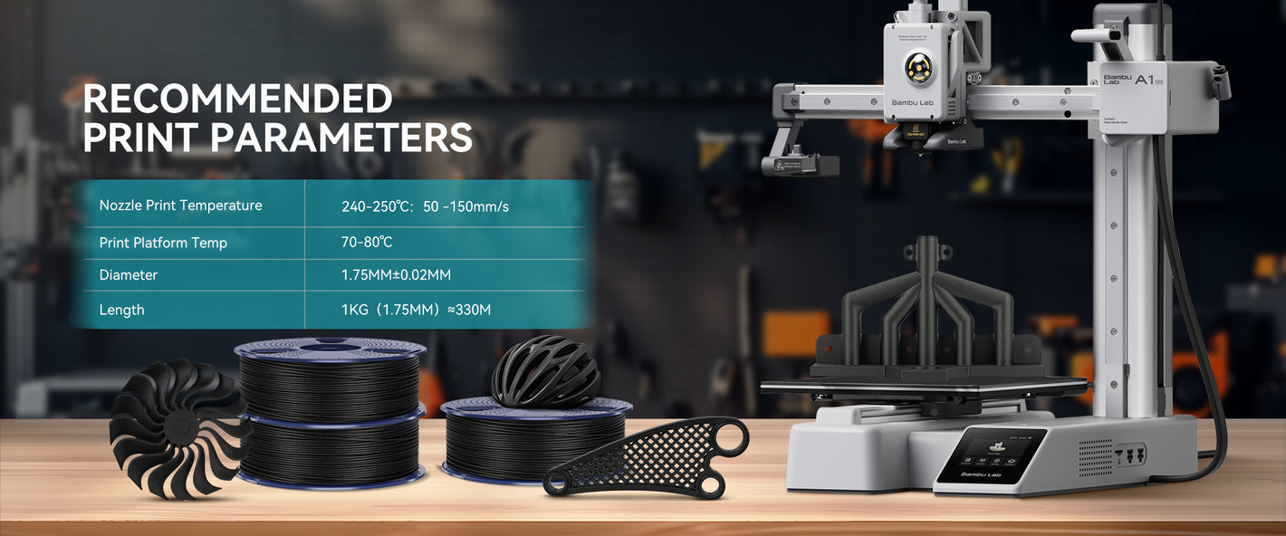 [High Heat Resistance] With a heat distortion temperature reaching 70°C, PETG-CF offers enhanced material strength and thermal stability, while retaining the impact resistance that PETG is known for.