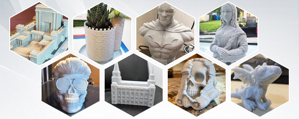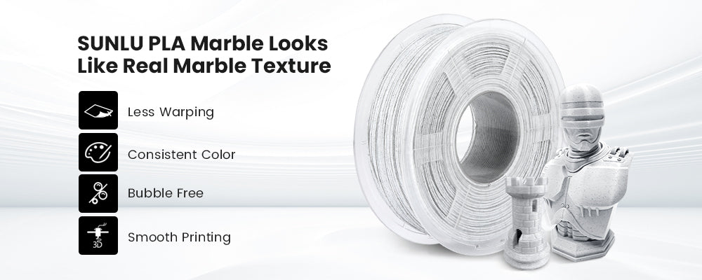 Ressemble à une vraie texture de marbre. Compatible avec toutes les imprimantes SUNLU et la plupart des imprimantes 3D FDM du marché.