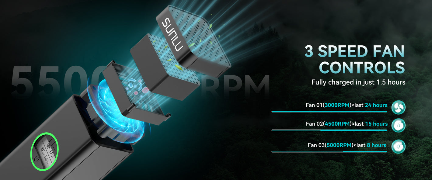[Adjustable Stages] Set 3 fan stages, the speed corresponds to 3000RPM/4500RPM/5500RPM respectively, according to different scenarios set up, more flexible;
