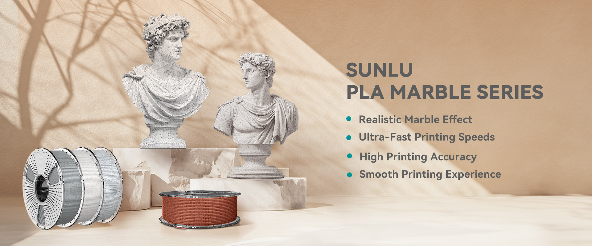 SUNLU High Speed PLA Marble Filament mimics natural stone and building materials, perfect for creating aesthetic, high-speed 3D prints. Ideal for architectural models, sculptures, and artistic creations with unique textures.