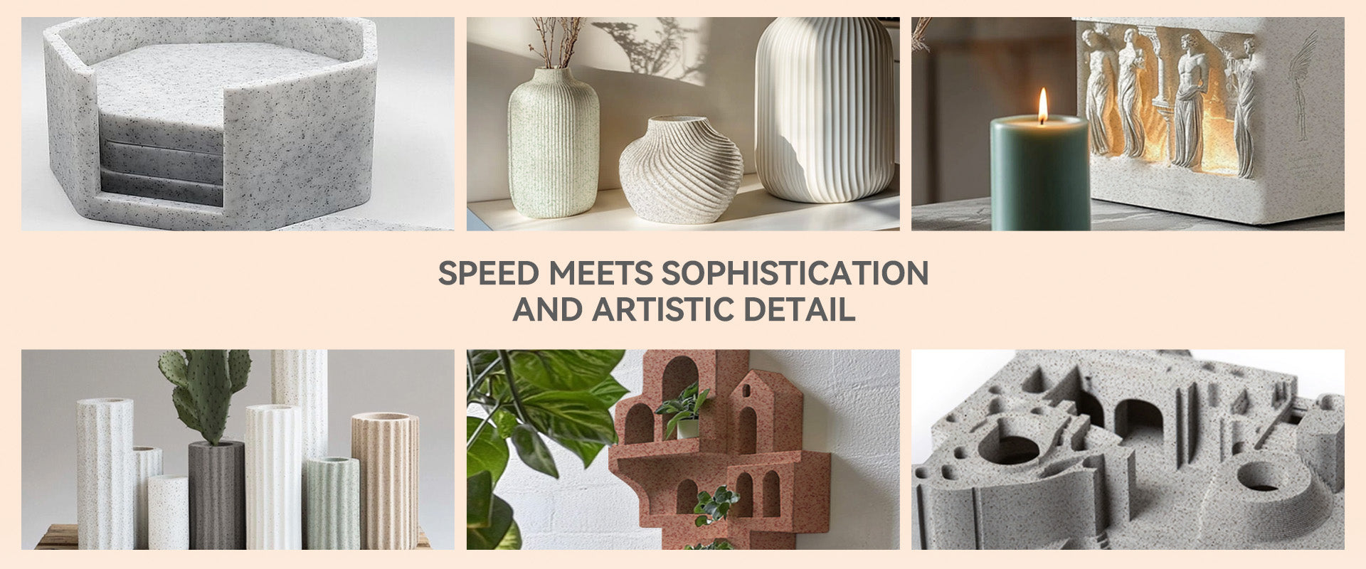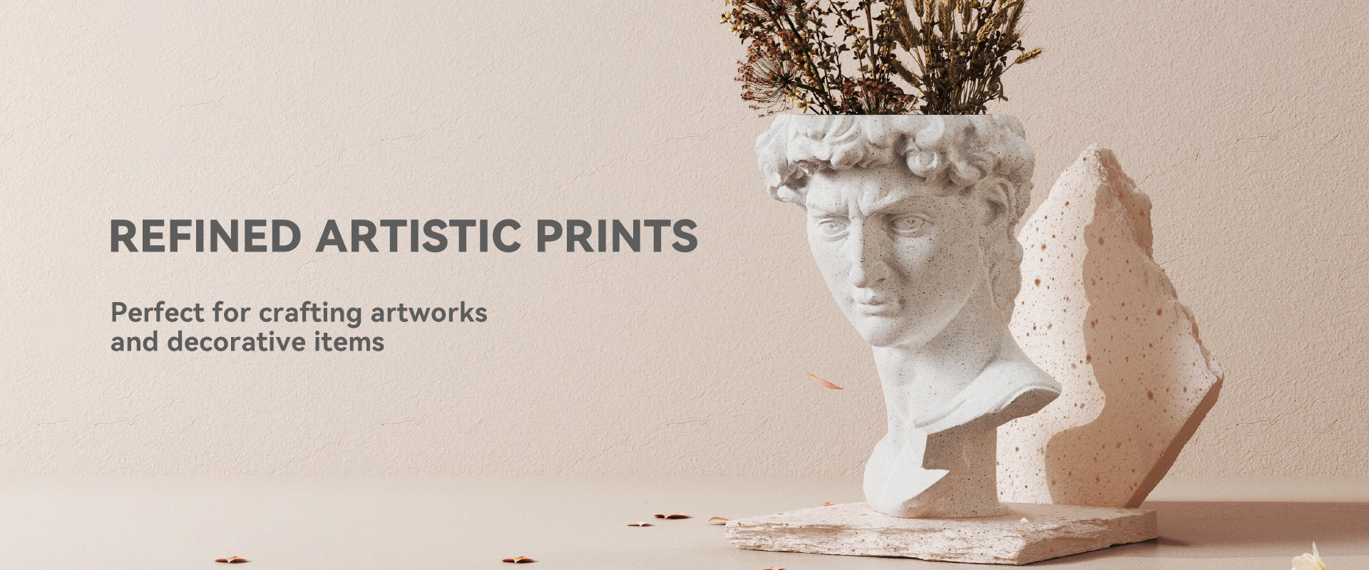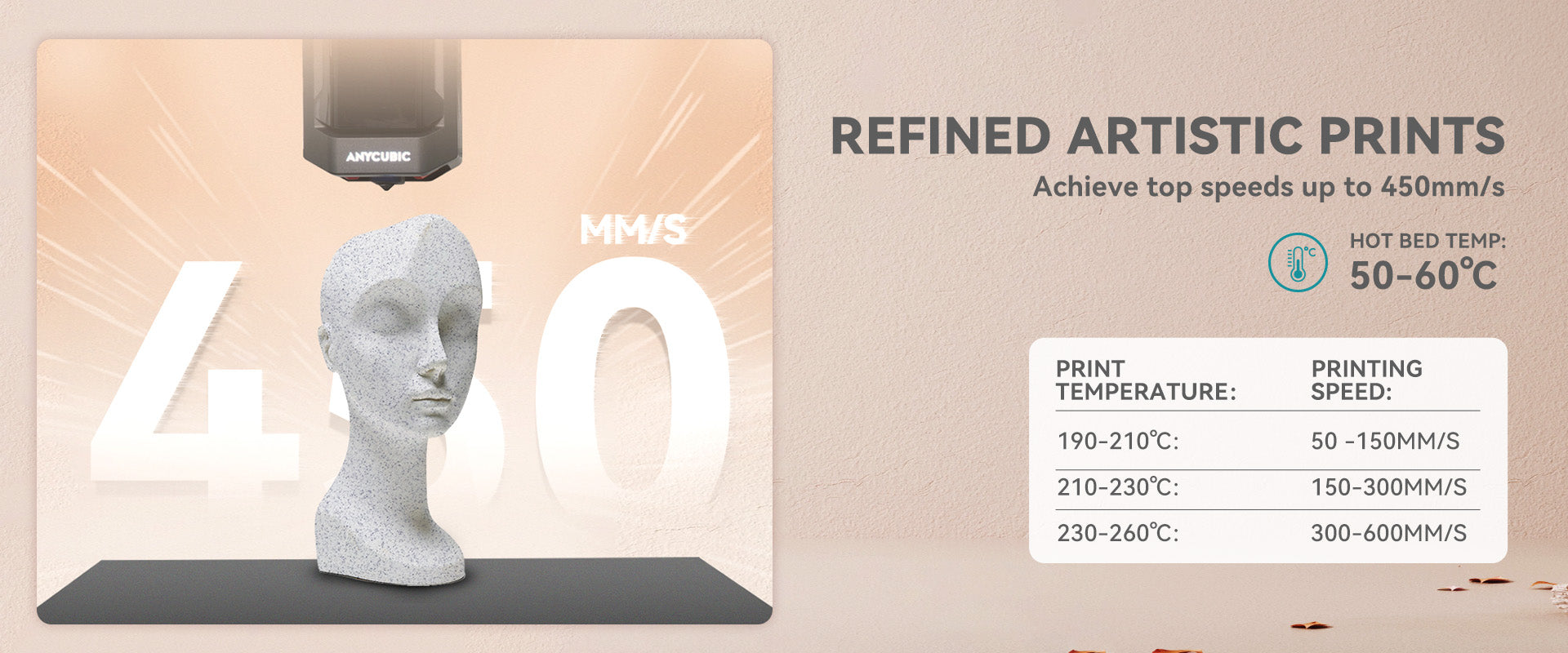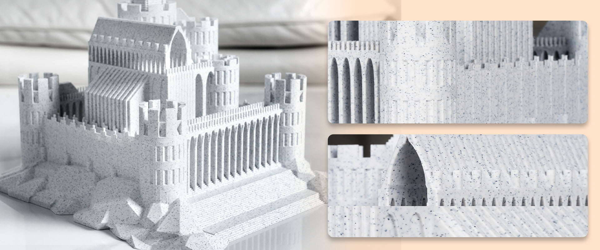 Up to 600mm/s high-speed 3d printing, no plugging, no drawing, no warping. Realistic Stone and Architectural Effects: